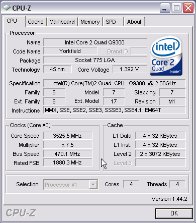 Результат разгона Intel Core 2 Quad (Yorkfield)