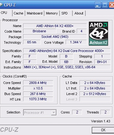 Результат разгона AMD Athlon 64 X2 (Brisbane)
