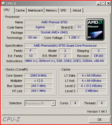 | Процессор (ядро) | AMD Phenom X4 (Agena) |