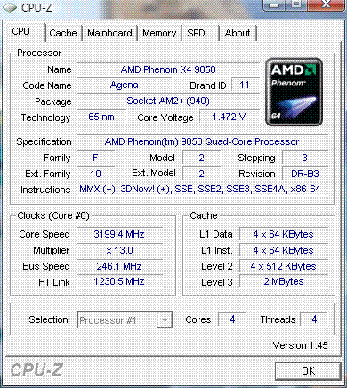 | Процессор (ядро) | AMD Phenom X4 (Agena) |
