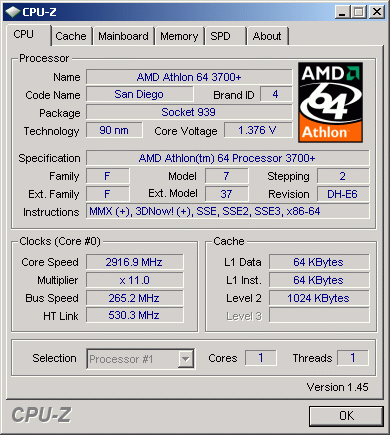 | Процессор (ядро) | AMD Athlon 64 (San Diego) |