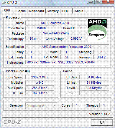 | Процессор (ядро) | AMD Sempron (Manila) |
