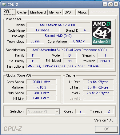 Результат разгона AMD Athlon 64 X2 (Brisbane)