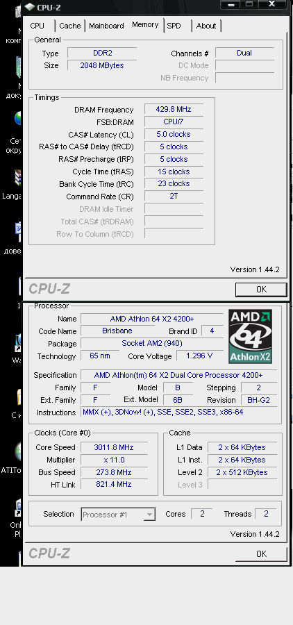 Результат разгона AMD Athlon 64 X2 (Brisbane)