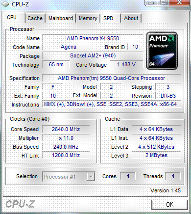 | Процессор (ядро) | AMD Phenom X4 (Agena) |