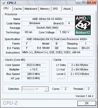 Результат разгона AMD Athlon 64 X2 (Brisbane)