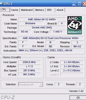 Результат разгона AMD Athlon 64 X2 (Brisbane)