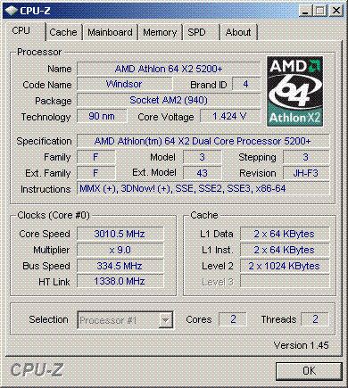 | Процессор (ядро) | AMD Athlon 64 X2 (Windsor) |