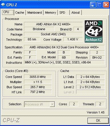 Результат разгона AMD Athlon 64 X2 (Brisbane)