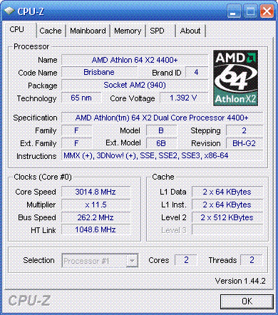 Результат разгона AMD Athlon 64 X2 (Brisbane)