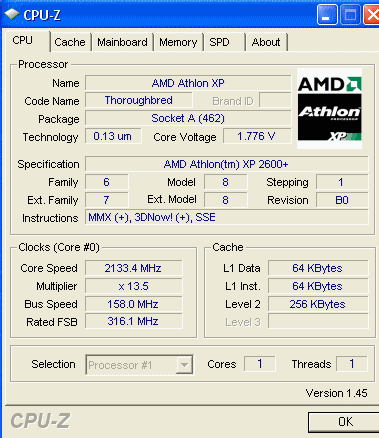 | Процессор (ядро) | AMD Athlon XP (Thoroughbred) |