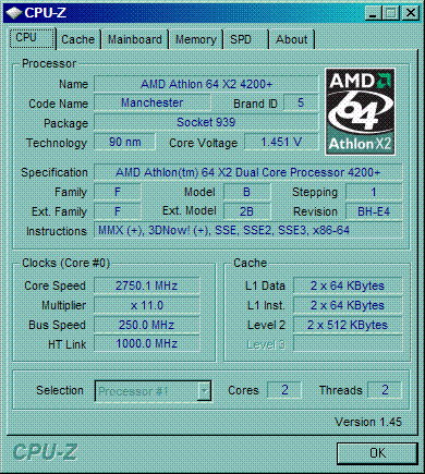 | Процессор (ядро) | AMD Athlon 64 X2 (Manchester) |