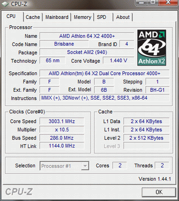 Результат разгона AMD Athlon 64 X2 (Brisbane)