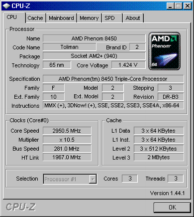 | Процессор (ядро) | AMD Phenom X3 (Toliman) |