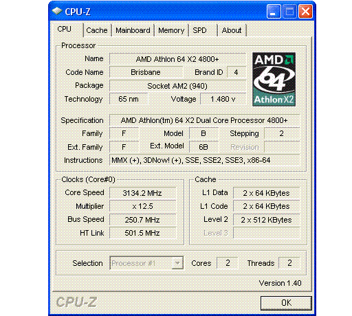 | Процессор (ядро) | AMD Athlon 64 X2 (Brisbane) |