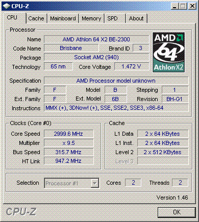 | Процессор (ядро) | AMD Athlon 64 X2 (Brisbane) |