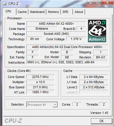 Результат разгона AMD Athlon X2 (Brisbane)