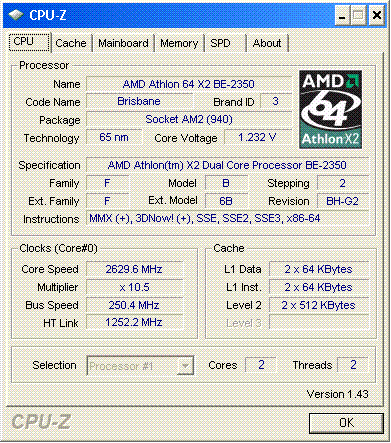 Результат разгона AMD Athlon 64 X2 (Brisbane)