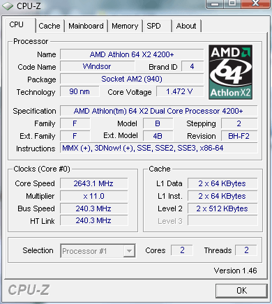 Результат разгона AMD Athlon 64 X2 (Windsor)