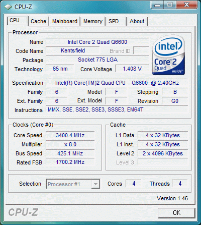| Процессор (ядро) | Intel Core 2 Quad (Kentsfield) |