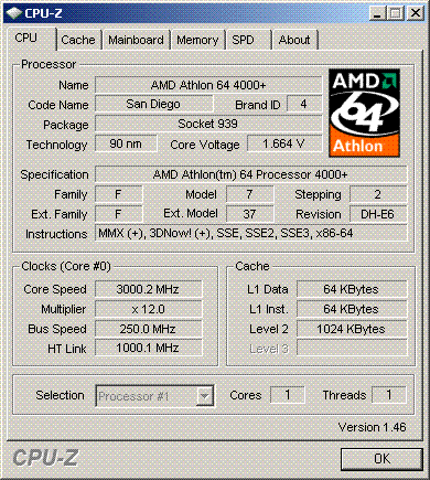 | Процессор (ядро) | AMD Athlon 64 (San Diego) |