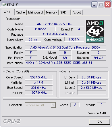 Результат разгона AMD Athlon 64 X2 (Brisbane)
