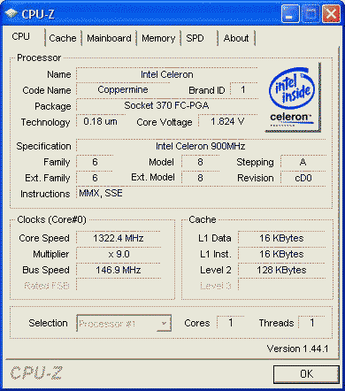 | Процессор (ядро) | Intel Celeron (Coppermine-128) |