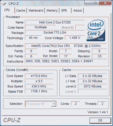 Результат разгона Intel Core 2 Duo (Wolfdale)