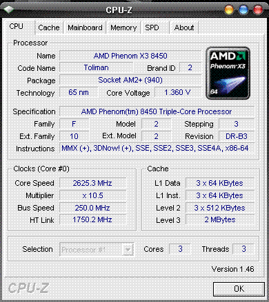 | Процессор (ядро) | AMD Phenom X3 (Toliman) |