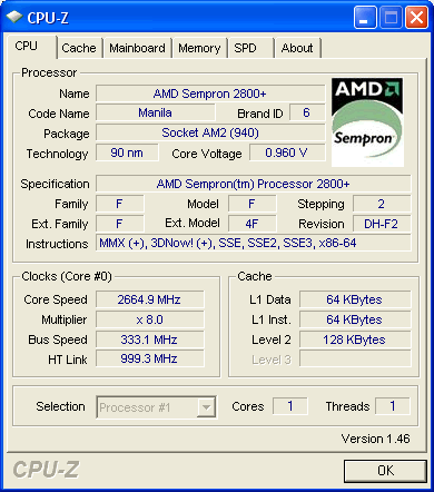 | Процессор (ядро) | AMD Sempron (Manila) |