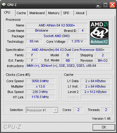 Результат разгона AMD Athlon 64 X2 (Brisbane)