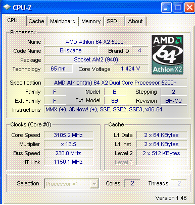 Результат разгона AMD Athlon 64 X2 (Brisbane)