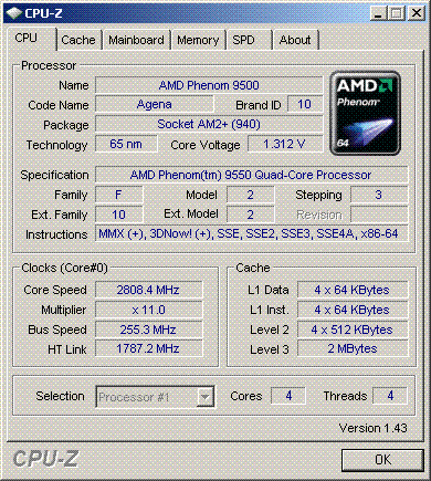 | Процессор (ядро) | AMD Phenom X4 (Agena) |