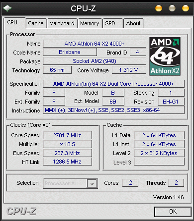 | Процессор (ядро) | AMD Athlon 64 X2 (Brisbane) |