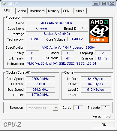 | Процессор (ядро) | AMD Athlon 64 (Orleans) |