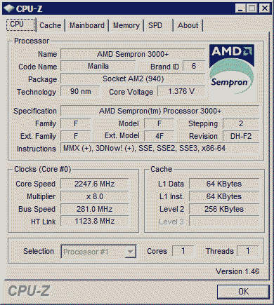 Результат разгона AMD Sempron (Manila)