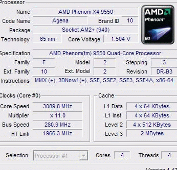 | Процессор (ядро) | AMD Phenom X4 (Agena) |