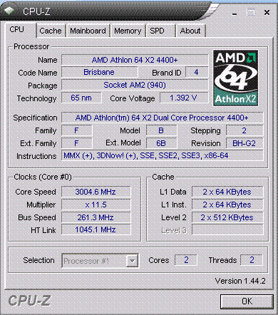 Результат разгона AMD Athlon 64 X2 (Brisbane)