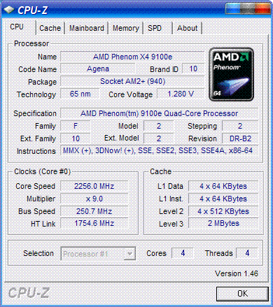 | Процессор (ядро) | AMD Phenom X4 (Agena) |