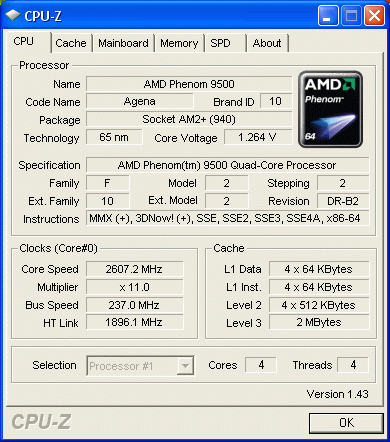 | Процессор (ядро) | AMD Phenom X4 (Agena) |