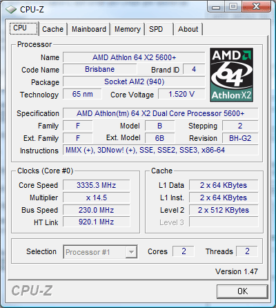| Процессор (ядро) | AMD Athlon X2 (Brisbane) |