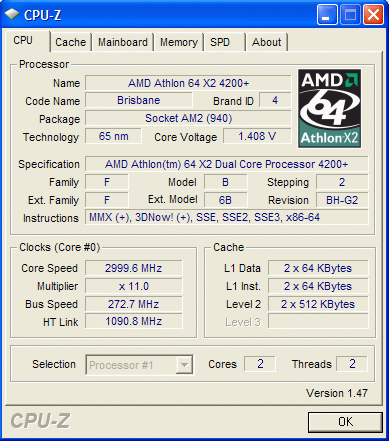Результат разгона AMD Athlon 64 X2 (Brisbane)