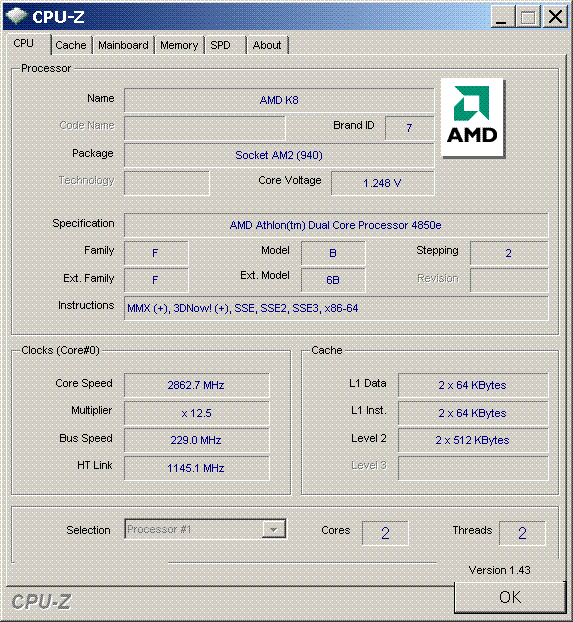 | Процессор (ядро) | AMD Athlon 64 X2 (Brisbane) |