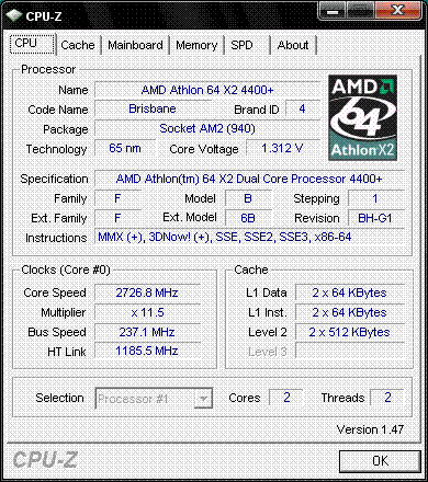 Результат разгона AMD Athlon 64 X2 (Brisbane)