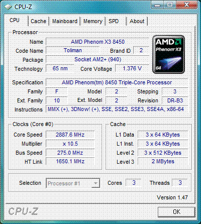 | Процессор (ядро) | AMD Phenom X3 (Toliman) |