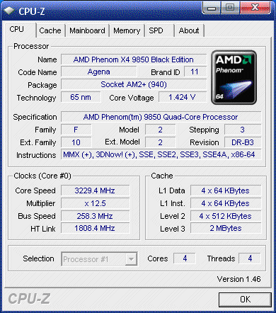 | Процессор (ядро) | AMD Phenom X4 (Agena) |