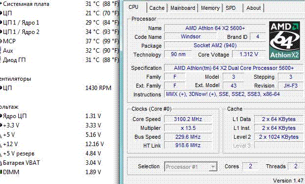 | Процессор (ядро) | AMD Athlon 64 X2 (Windsor) |
