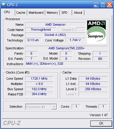 | Процессор (ядро) | AMD Sempron (Thoroughbred) |