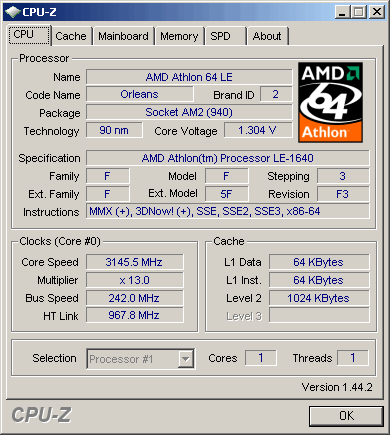 | Процессор (ядро) | AMD Athlon 64 (Orleans) |