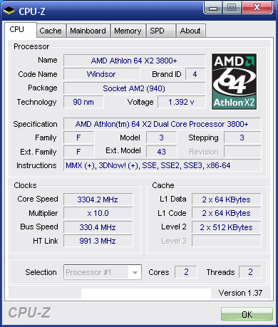 | Процессор (ядро) | AMD Athlon 64 X2 (Windsor) |